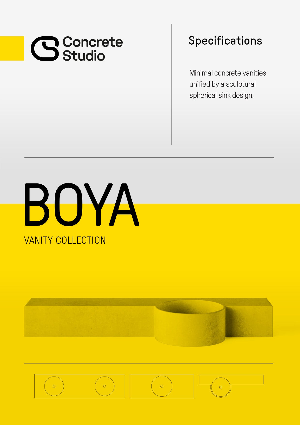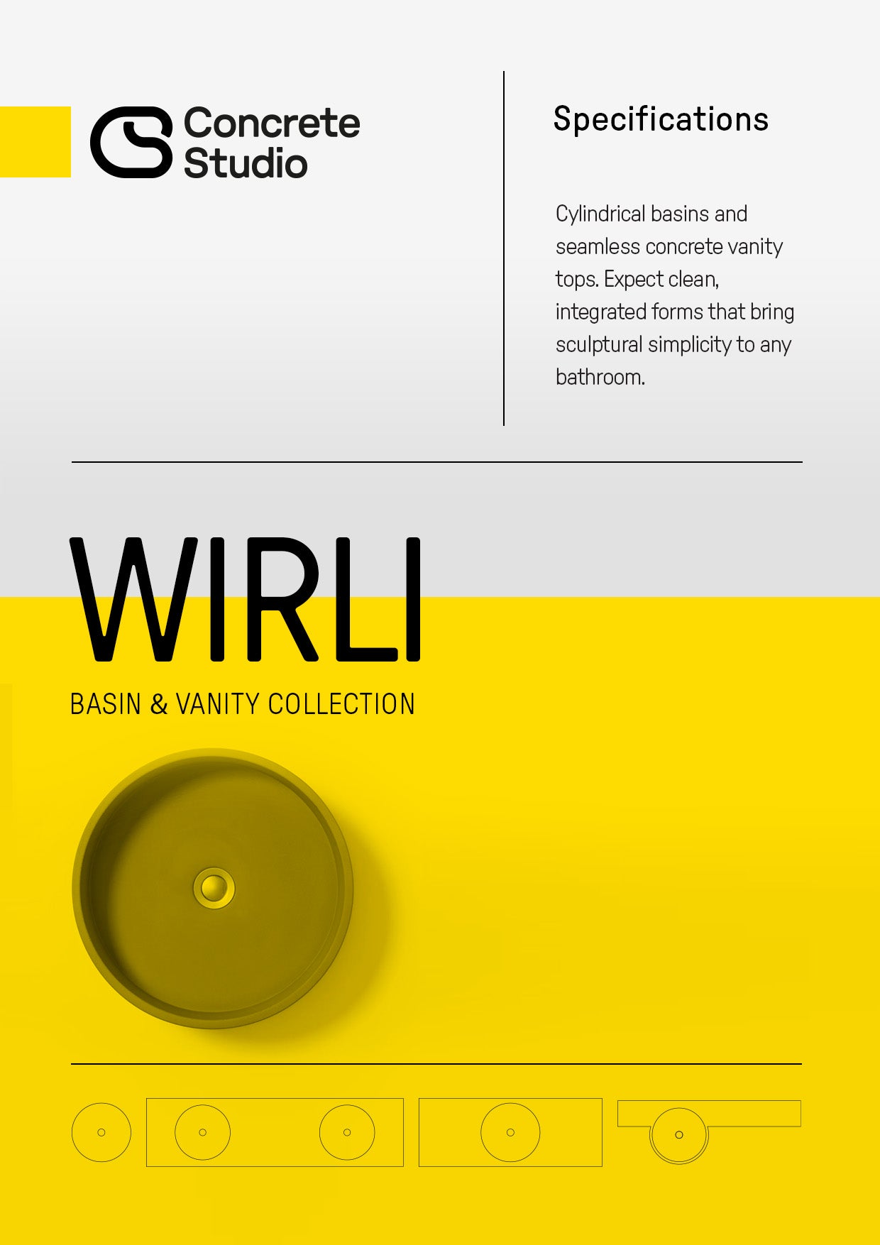 Cylindrical basins and seamless concrete vanity tops. Integrated forms with sculptural simplicity.