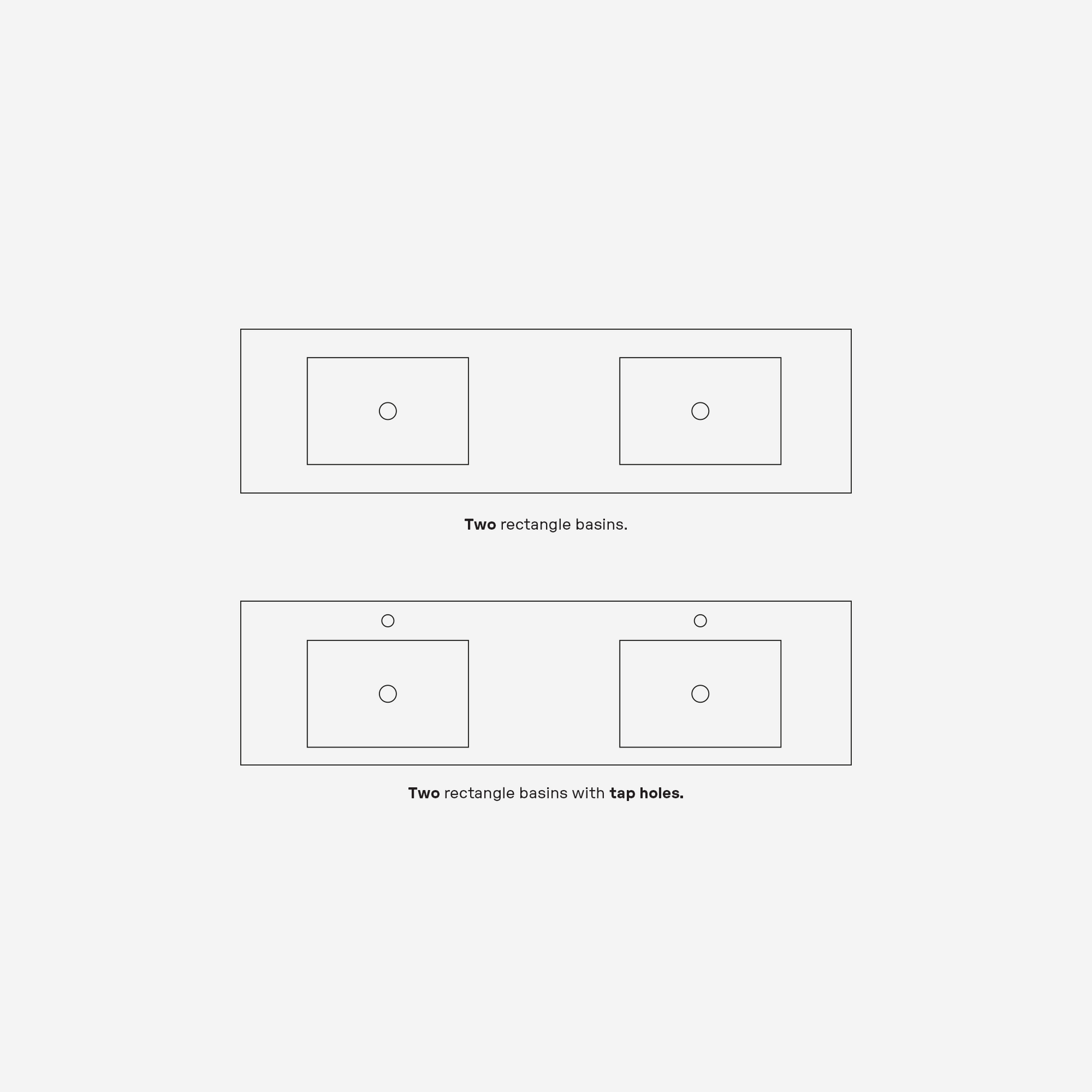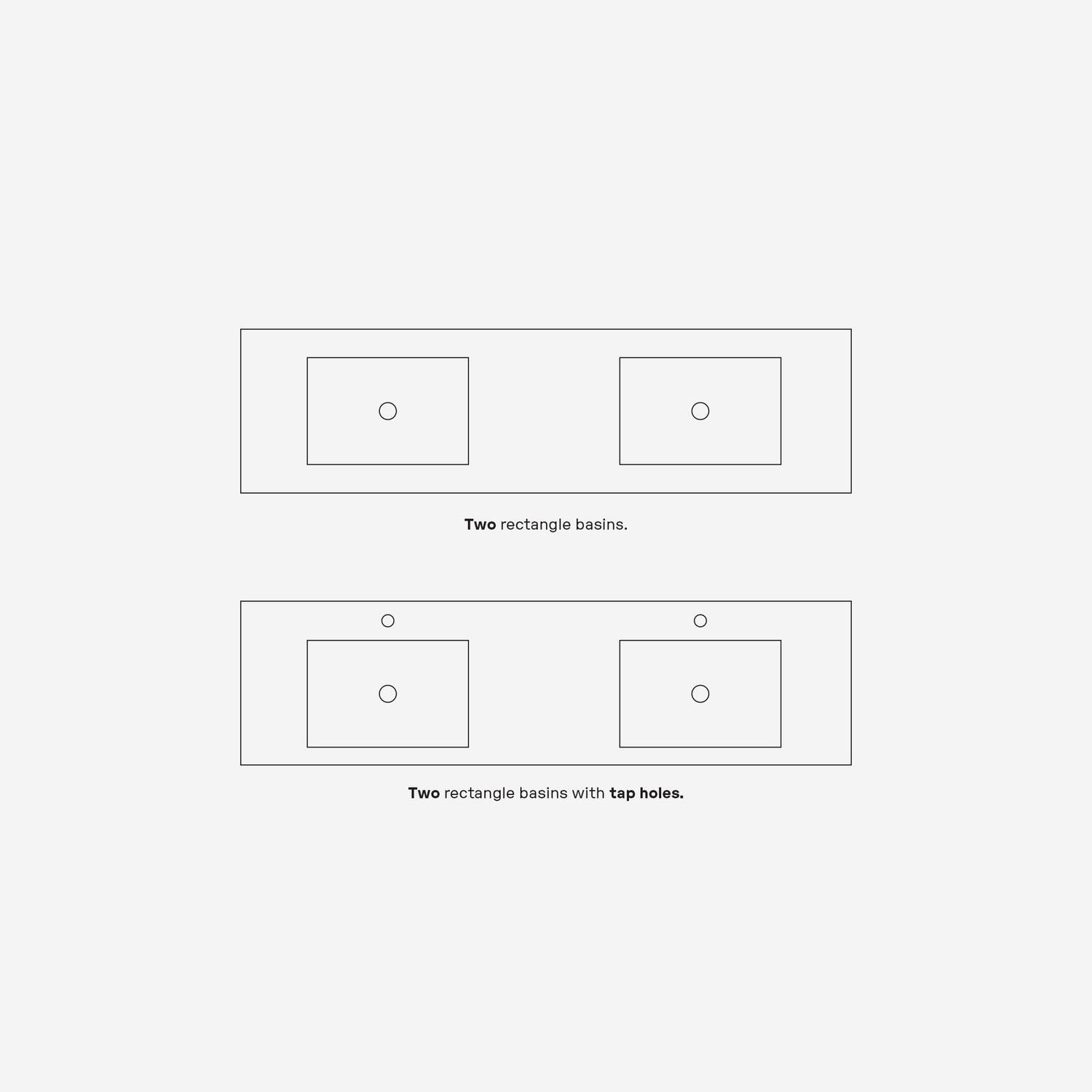 This vanity top features two seamlessly cast-in rectangular basin. Available in 1800mm to 2100mm, the Baly Double Vanity offers unparalleled versatility and style for any bathroom space, large or small.