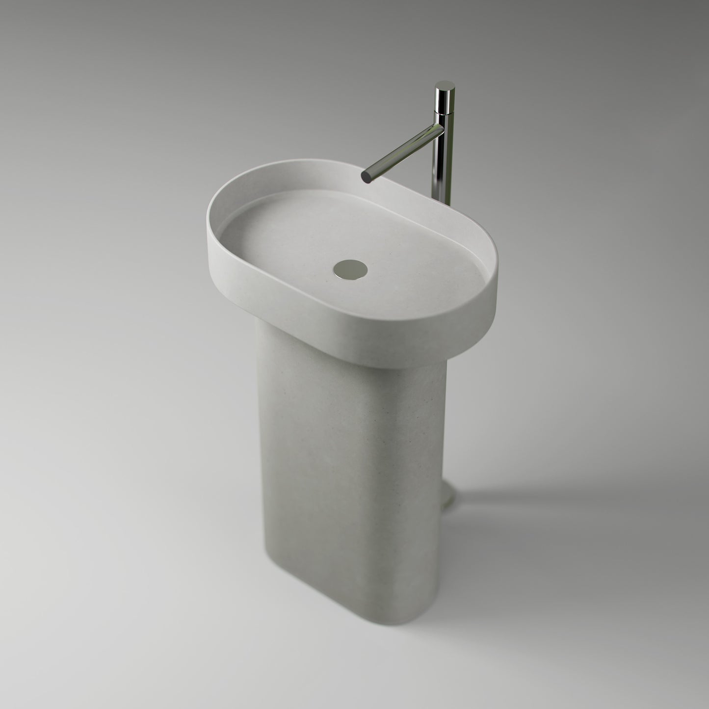 Designed to bring architectural strength to luxury bathrooms, the Bilya Pedestal pairs the crisp geometry of our oblong basins with the commanding presence of a full-height concrete column. Defined by straight sides and slim vertical edges, it reflects our core values: honest design, considered details, and sustainable materials that endure.