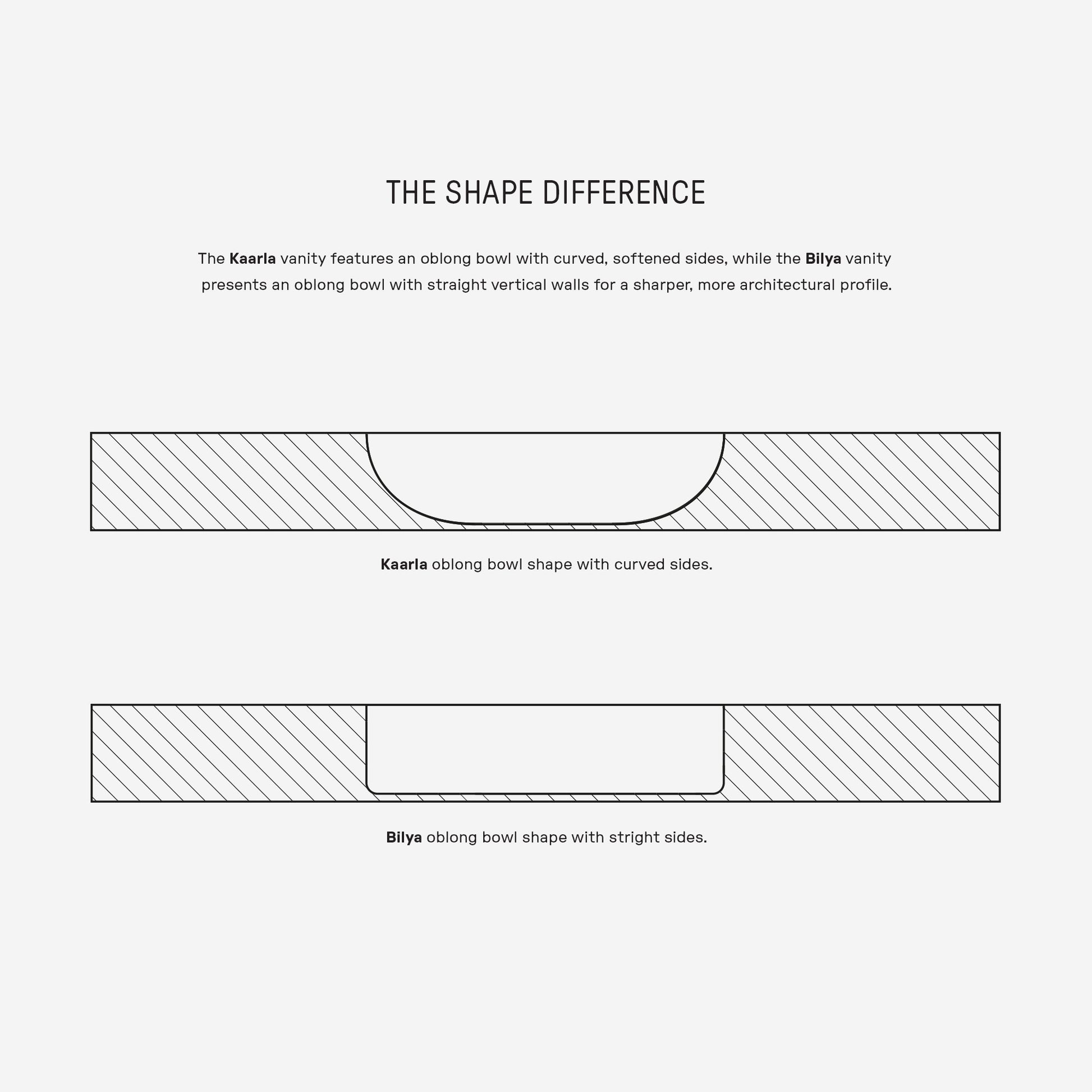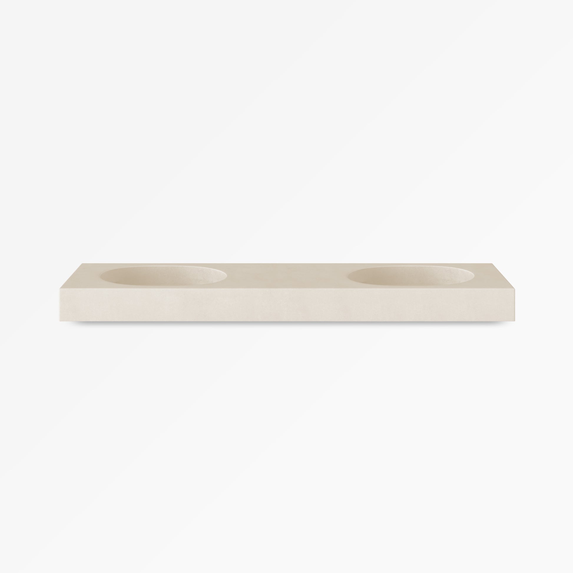 The Bilya Double Vanity is cast in high-performance concrete with two seamlessly integrated, pill-shaped basins. Its elongated form creates a sculptural centrepiece, combining soft geometry with architectural presence. Designed to float as a wall-mounted piece or sit atop cabinetry, Bilya brings both refinement and strength to larger bathroom spaces.