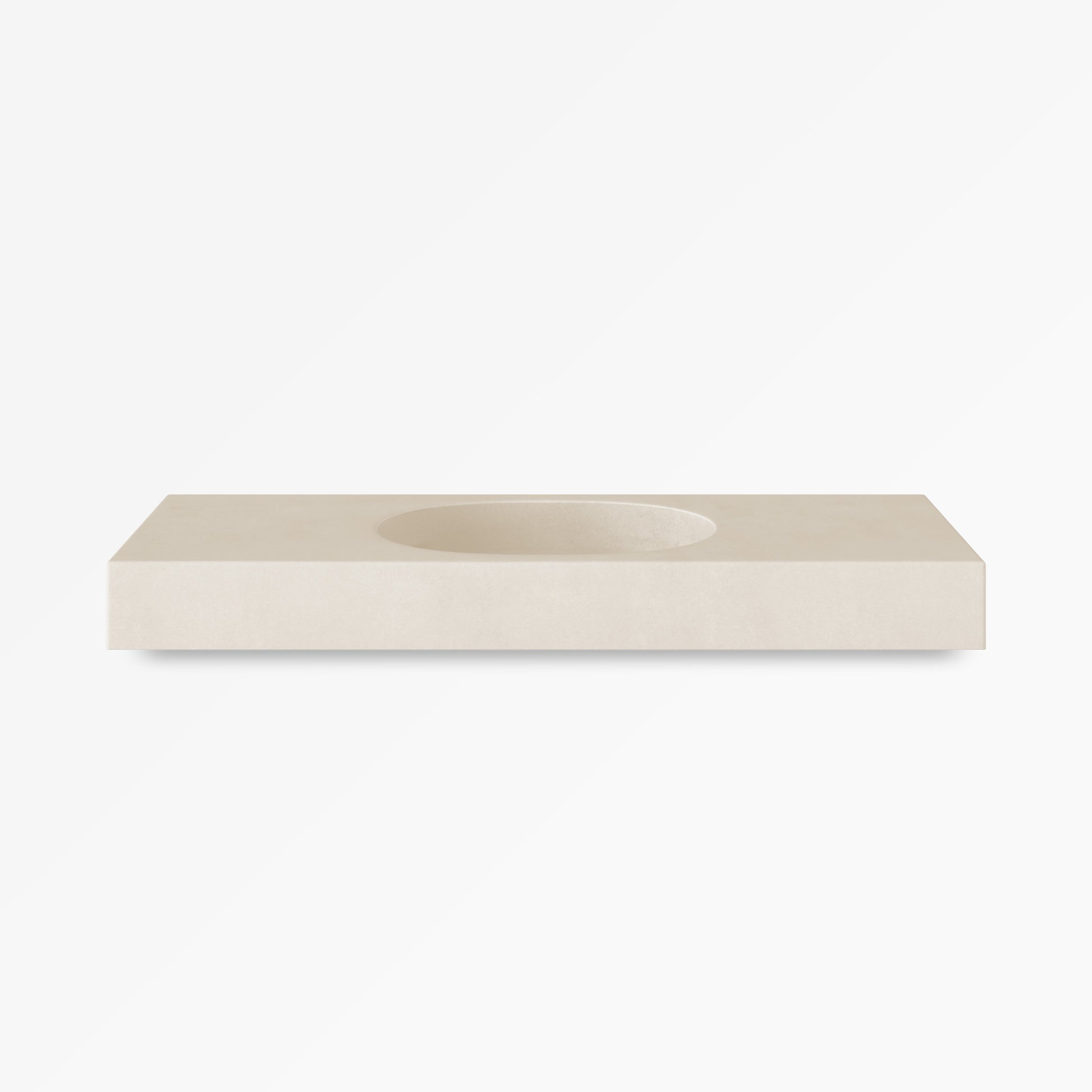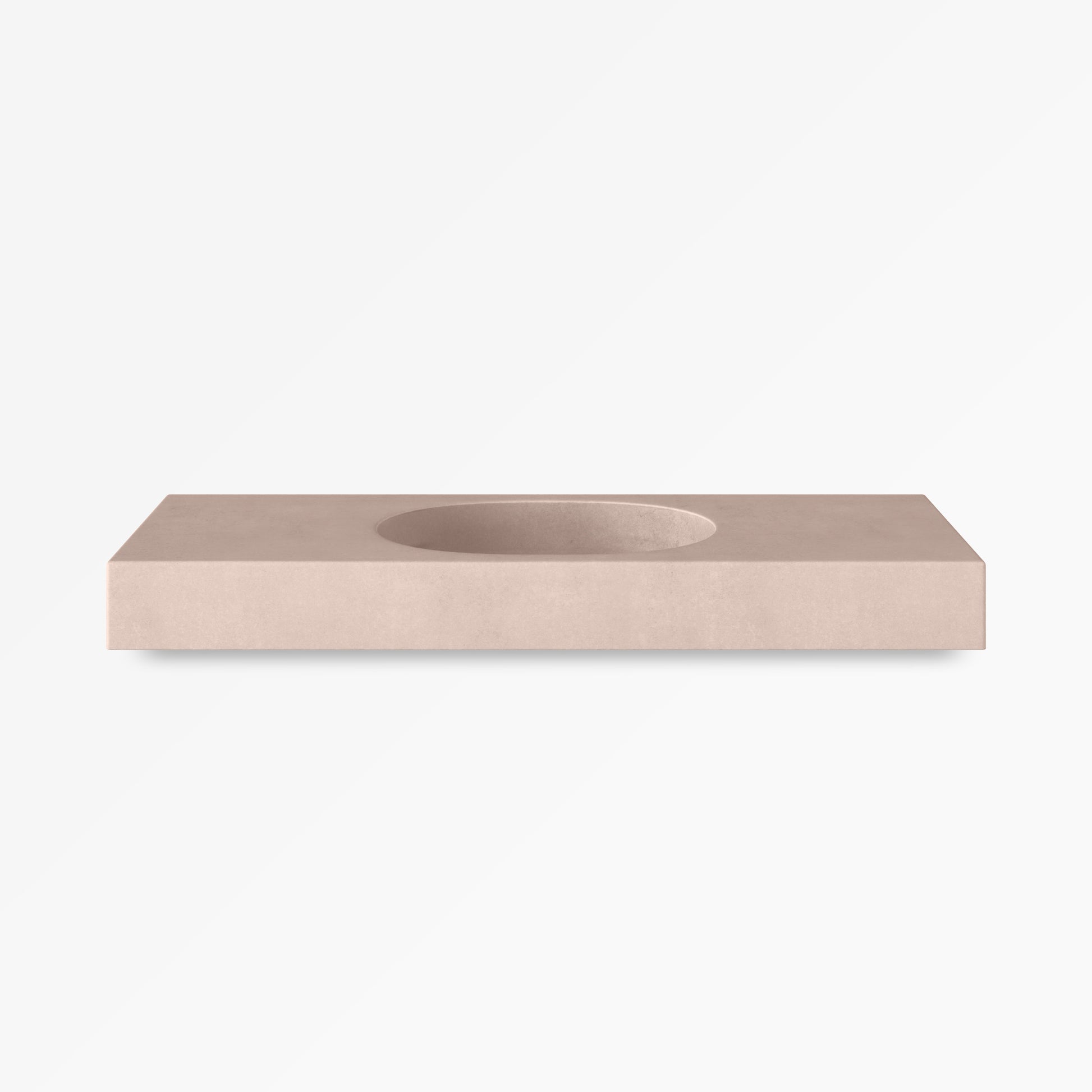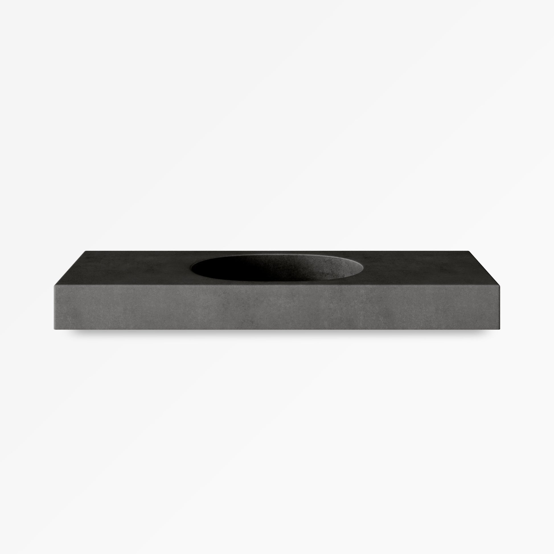A concrete vanity top integrated with a softly elongated, pill-shaped basin. This seamless design creates a smooth, sculptural statement for your bathroom with no edges to trap water. Kaarla vanity tops can be wall mounted (floating) or counter mounted onto suitable cabinetry.