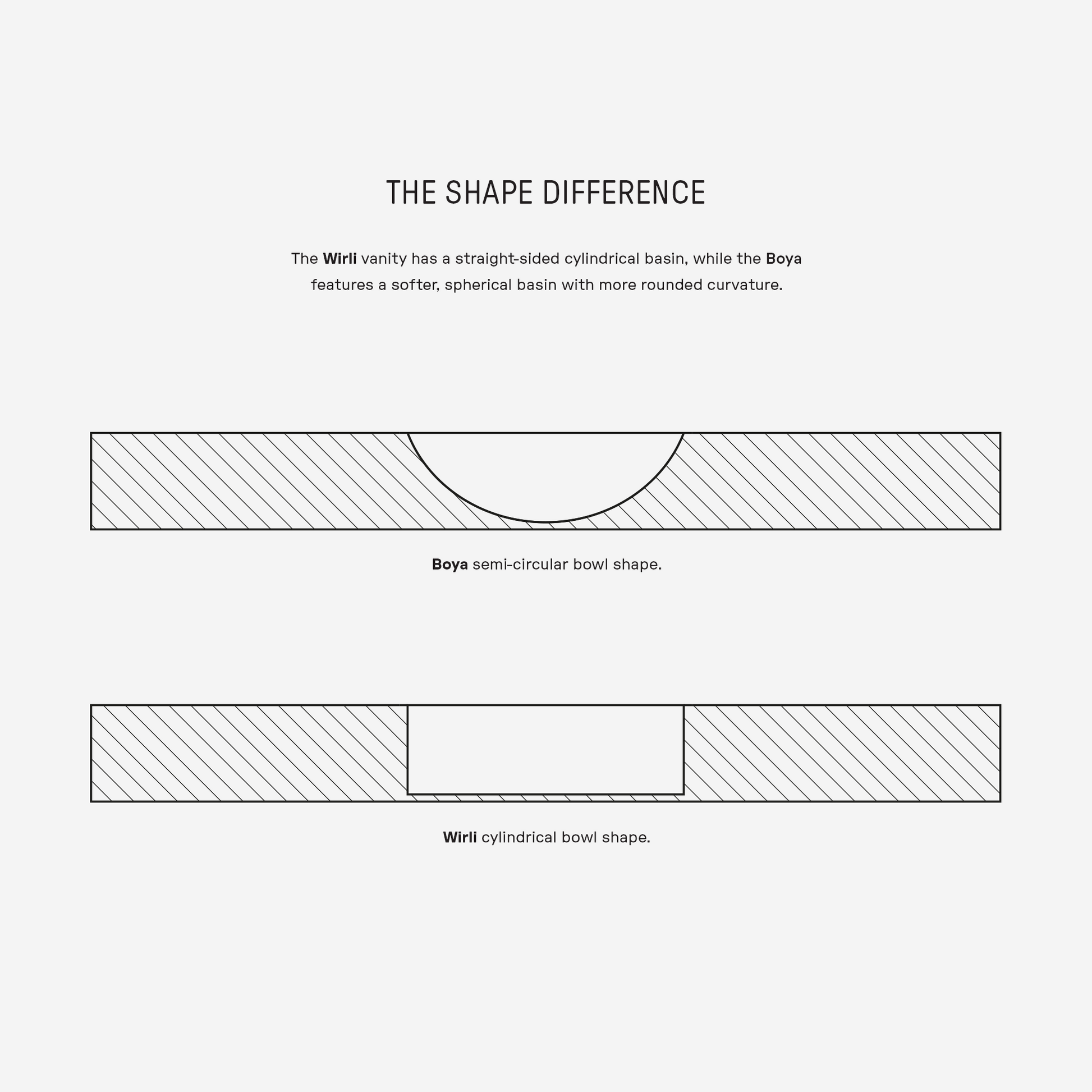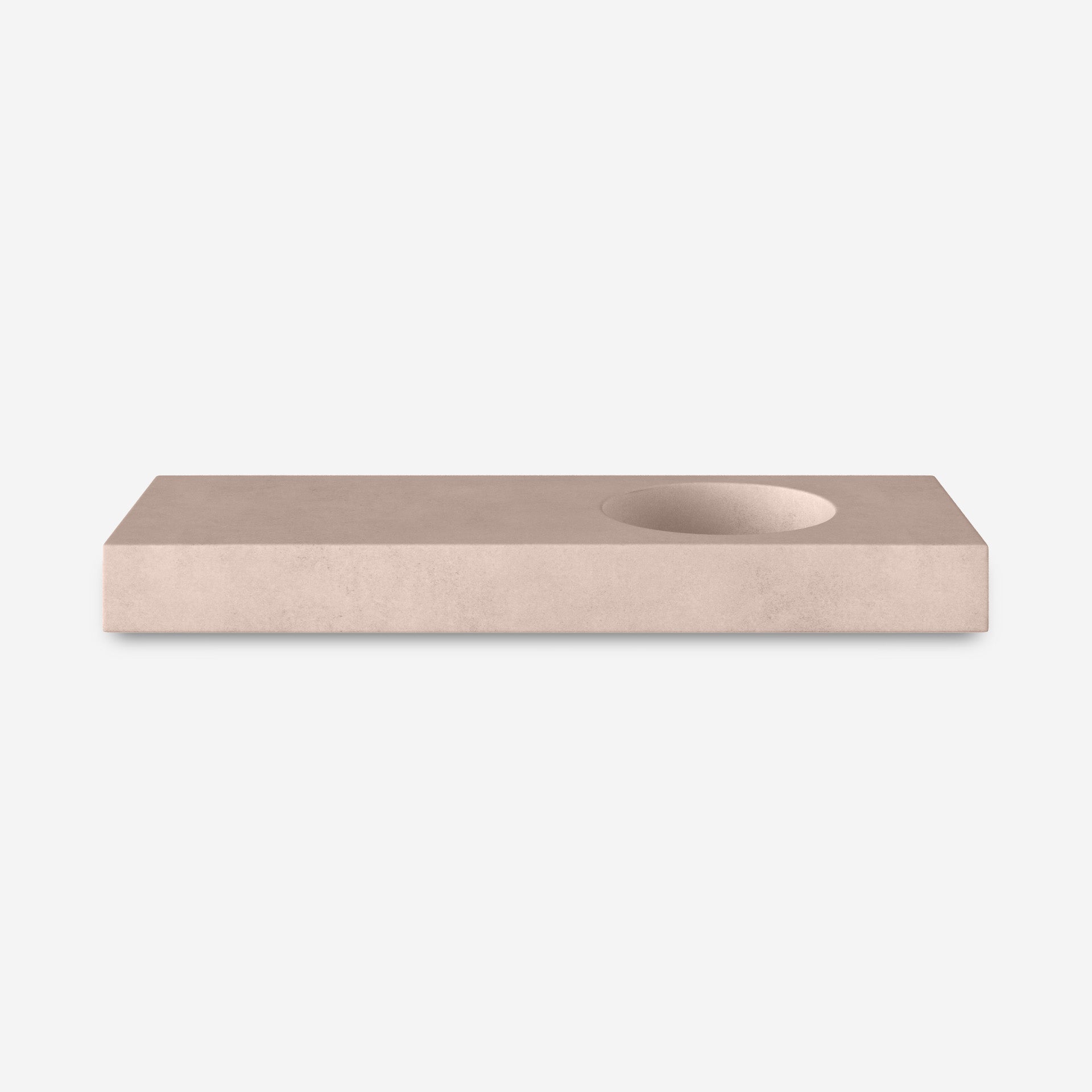 A concrete vanity top integrated with a cylindrical basin. This seamless design creates a smooth, sculptural statement for your bathroom with no edges to trap water. Wirli vanity tops can be wall mounted (floating) or counter mounted onto suitable cabinetry.