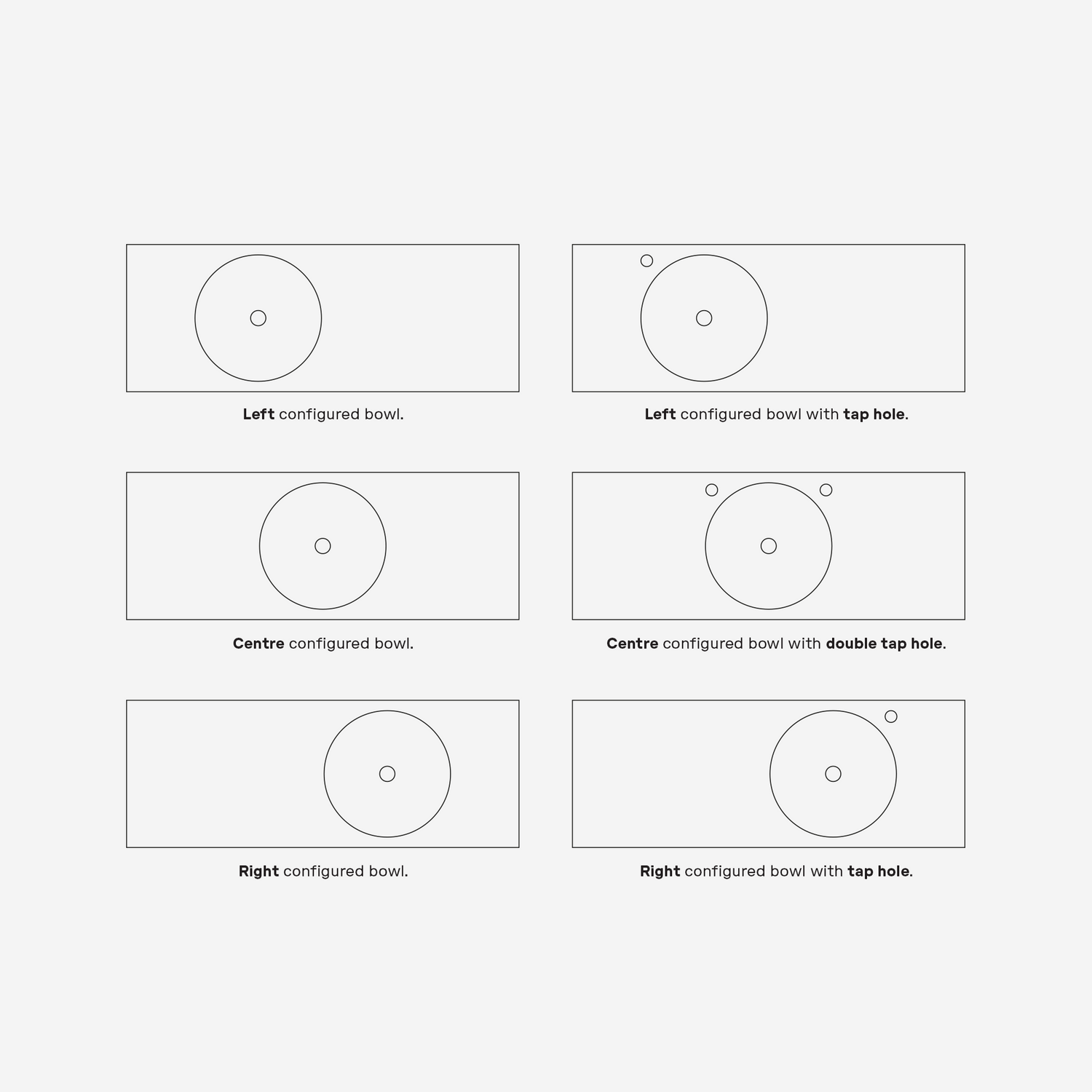 Please note: left and right bowl positions are only available on the 1,200 mm (48") vanity.